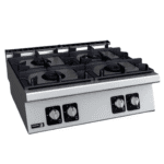 - Double-crown burners and diffusers made of nickel-plated cast iron which guarantee an even distribution of heat from the flame to the base of the pans, even for large pans. This therefore prevents heat from building up in a specific point and optimises energy transfer to the product.