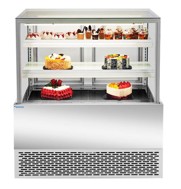 - LED lighting on each shelf to enhance cake presentation and colour vibrancy.