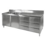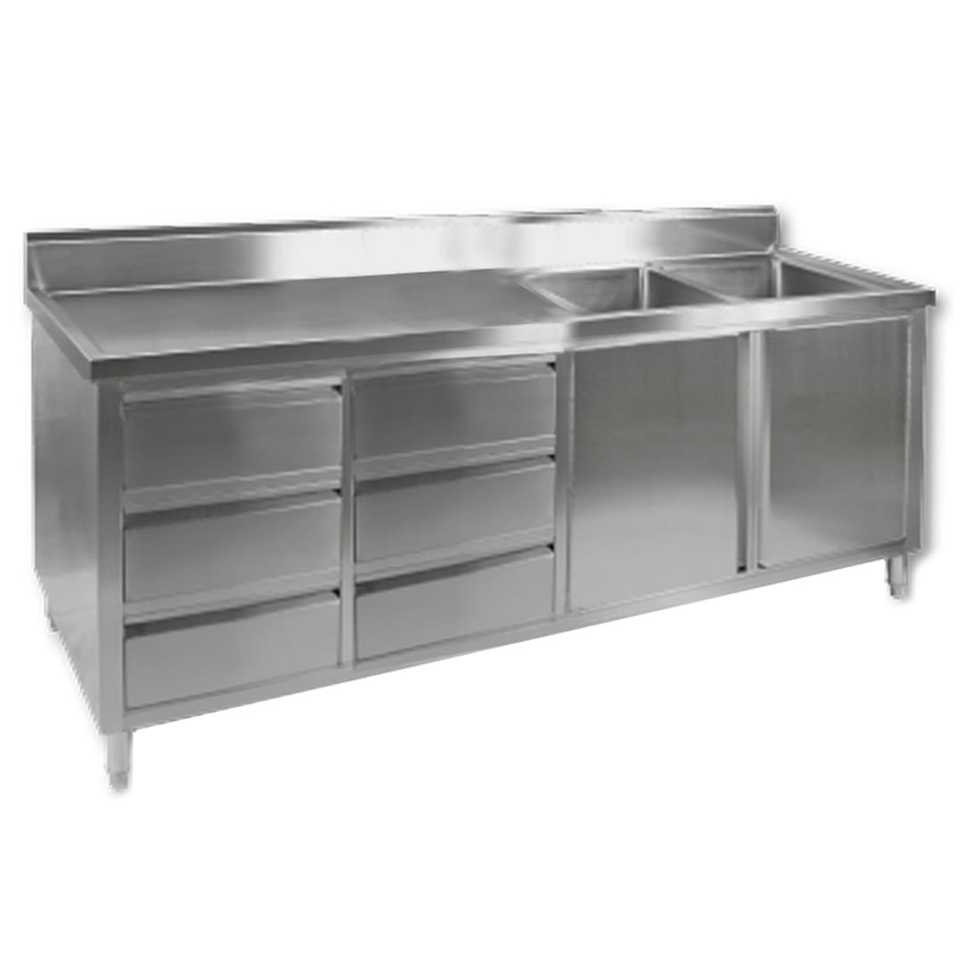 Great for open kitchens Left Sink 2100 mm wide ALL STAINLESS STEEL KITCHEN TIDY CABINET WITH SINK, DOORS & DRAWERS
